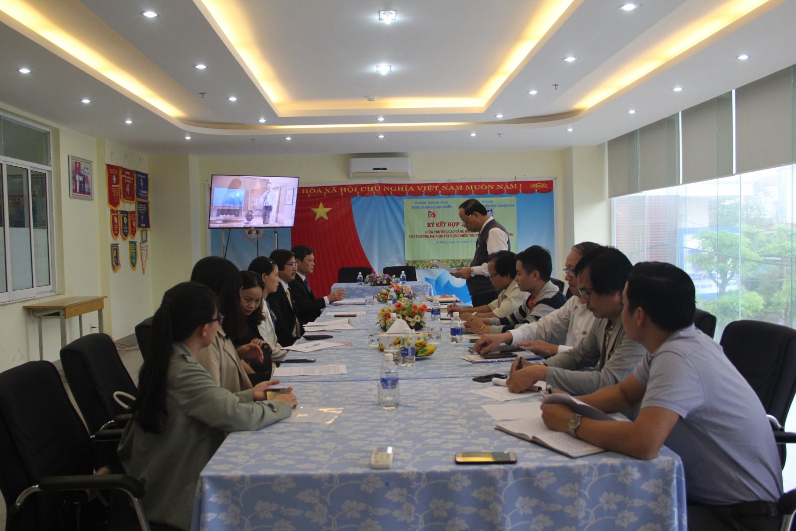 Phát biểu tại Lễ ký Thỏa thuận hợp tác, TS Huỳnh Ngọc Hào – Phụ trách phân hiệu trường Đại học Xây dựng Miền trung đã nhấn mạnh tầm quan trọng của công tác đào tạo nhằm cung cấp nguồn nhân lực chất lượng trong lĩnh vực xây dựng và kiến trúc. Đặc biệt, TS Huỳnh Ngọc Hào lưu tâm đến các chuyên môn về xây dựng, kiến trúc, công trình giao thông, cấp thoát nước và môi trường cũng như các lĩnh vực khác có liên quan đến khả năng của hai bên, đồng thời tin tưởng rằng mối quan hệ hợp tác giữa hai bên sẽ có những bước phát triển tốt đẹp, bền vững trong tương lai.