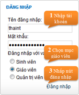 - Tên tài khoản chính là mã giáo viên, để biết mã giáo viên liên hệ Phòng Đào tạo.