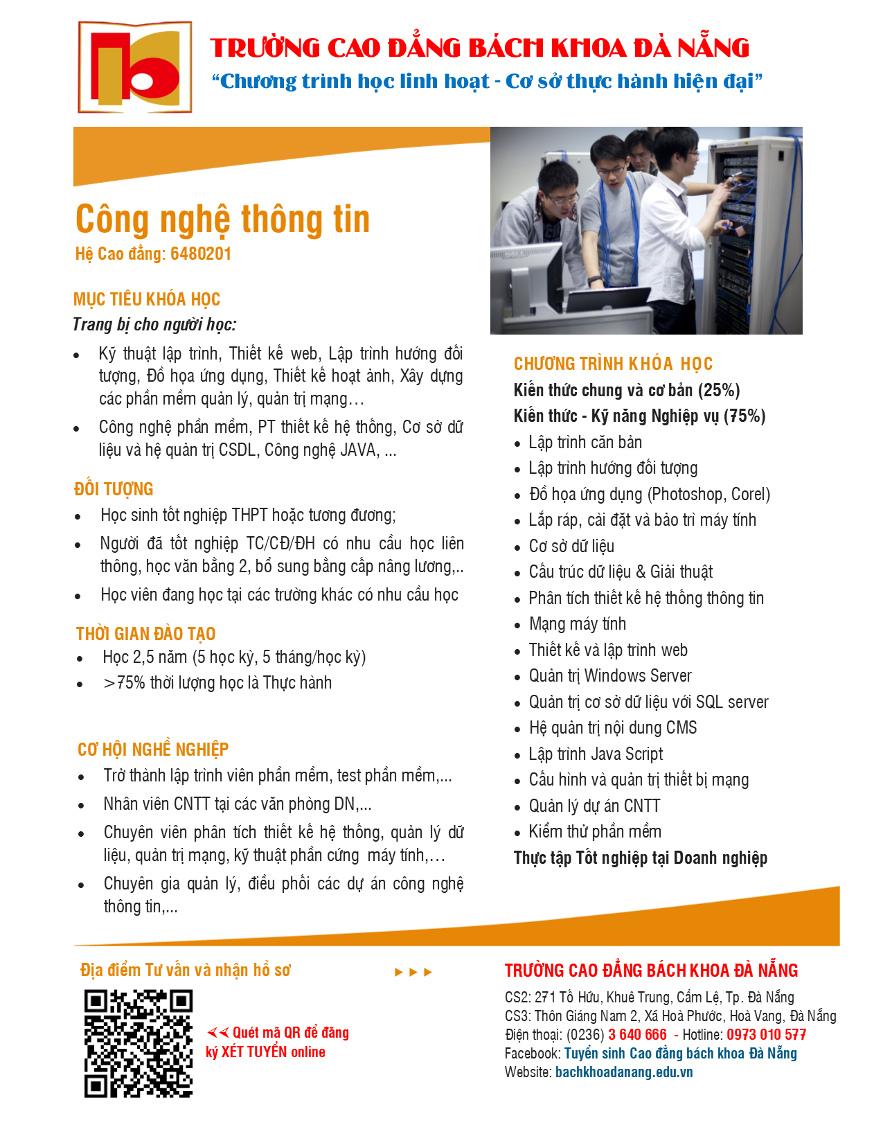 - Sử dụng được các công cụ, kỹ thuật thông dụng để ứng dụng CNTT vào các lĩnh vực thực tế: quản trị hệ thống mạng, quản trị cơ sở dữ liệu, thiết kế web và thực hành thương mại điện tử.