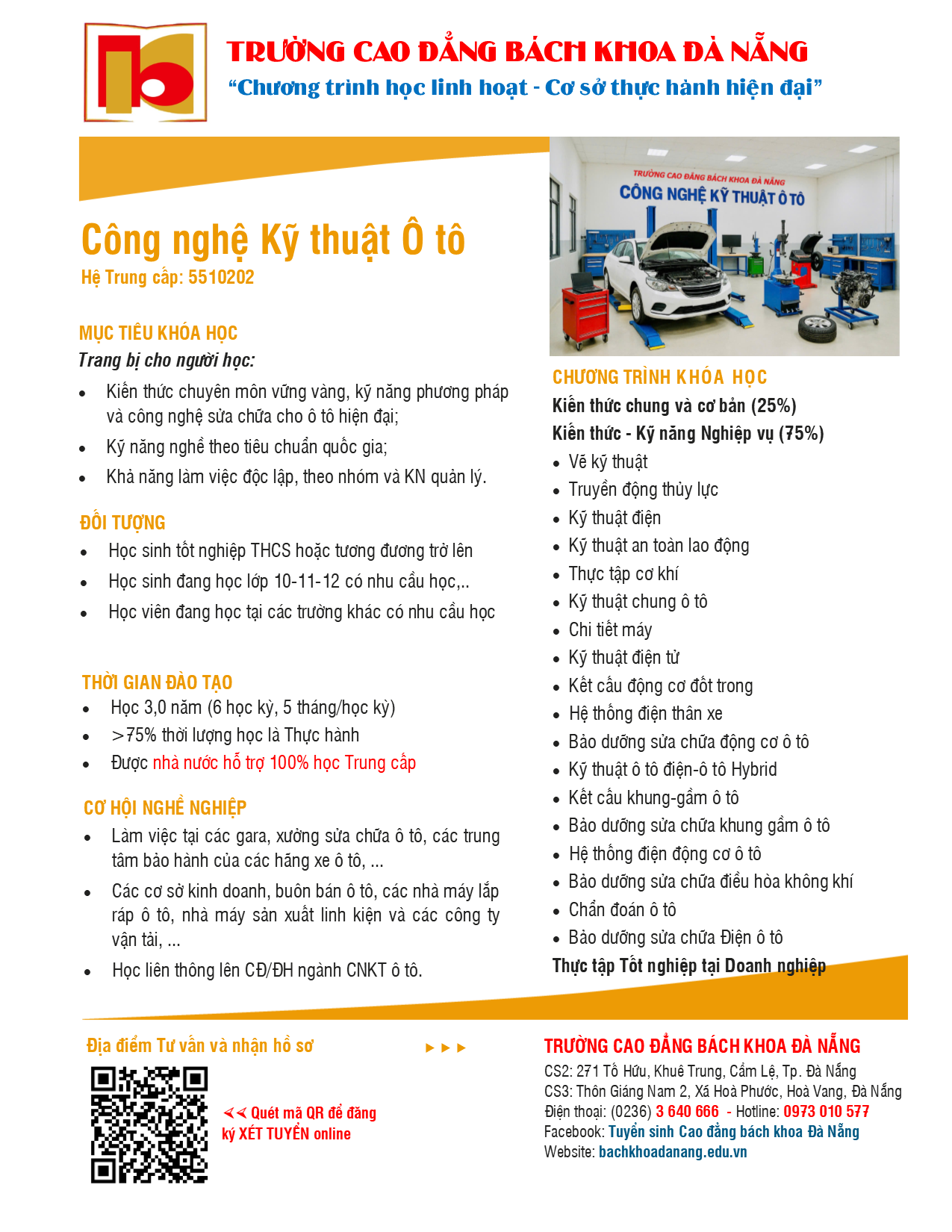 Ngành Trung cấp Công nghệ Kỹ thuật Ô tô